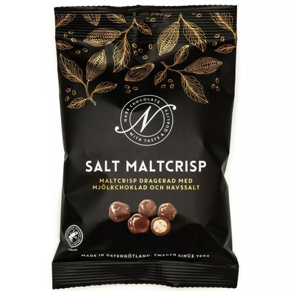 Offrez-vous une friandise exceptionnelle venue de Suède : de délicieuses boules au malt enrobées d'un délicieux chocolat au lait et agrémentées d'une pincée de sel marin. Ces boules croustillantes uniques allient le goût sucré du chocolat à la salinité subtile du sel de mer pour un plaisir incomparable.