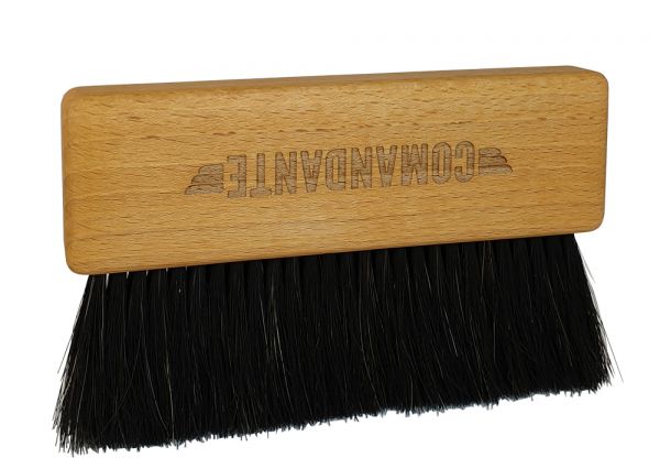 Cette brosse barista rustique est la plus grande de la gamme Comandante. Avec une longueur de 16,5 cm, elle est suffisamment grande pour éliminer tous les résidus de café de votre plan de travail. La brosse est non seulement très pratique, mais elle est également très élégante et stylée. Le manche est en bois de hêtre local, qui a été légèrement fumé avant d'être traité. Cela lui confère une belle teinte plus foncée et permet de voir clairement le grain du bois. Le logo Comandante est gravé sur le devant du manche. Lorsque vous n'utilisez pas la brosse, vous pouvez la poser à l'envers et le logo reste facilement lisible. Les poils sont en crin de cheval véritable et leur densité élevée les rend idéaux pour balayer. Fabriquée à la main dans la Forêt-Noire, cette brosse attire tous les regards dans n'importe quel coin café et constitue donc une recommandation évidente de notre part.