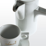 Une forme courante de la Karlsbader Kanne est la populaire Bayreuther Kaffeemaschine. Elle est fabriquée en porcelaine blanche à Bayreuth et séduit depuis plus de 100 ans avec son filtre particulièrement fin doté d'un double tamis en porcelaine émaillée. Grâce à son design intemporel et à sa porcelaine absolument neutre au goût, elle jouit d'une popularité croissante.