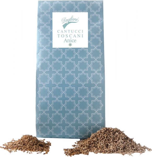 Ces cantucci all' Anice séduisent par leur goût anis savoureux, qui apportent aux biscuits croustillants un coup de fouet particulier et un goût corsé. Les petits cantucci sont cuits deux fois afin de garantir une texture parfaite et croustillante.