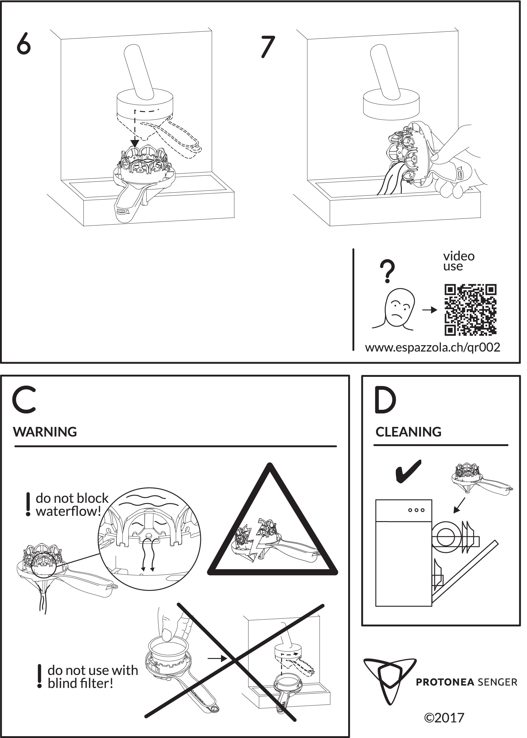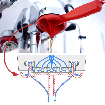 Elle est utilisée dans le groupe comme un porte-filtre et utilise l'eau chaude de la machine afin d´éliminer complètement tous les résidus de café sur toutes les surfaces. Au lieu de brosser le groupe à la main, la machine se nettoie presque automatiquement.