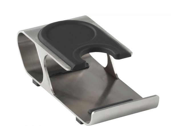 Station professionnelle / Support à Tamper solide et stable. Cette version est équipée d'un revêtement en silicone noir antidérapant.