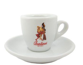 Tasse à expresso Barbera en porcelaine blanche avec symbole de la marque.